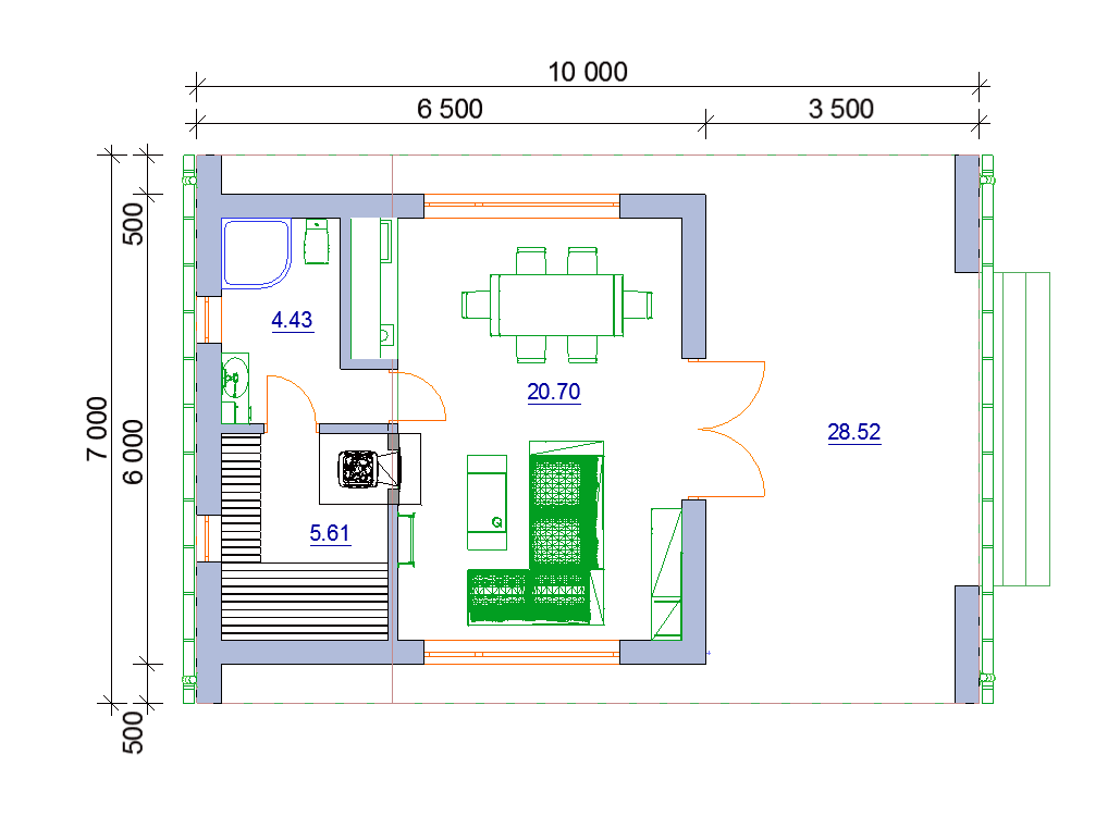 Баня современная, изготовим и установим в Московской и Тверской области. Габаритные размеры 7х10 метров, жилая площадь 31 кв.м и просторная терраса 28 кв.м.