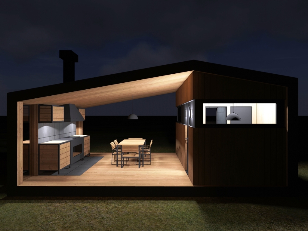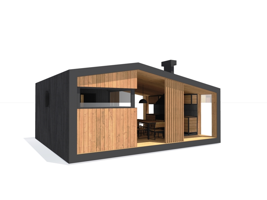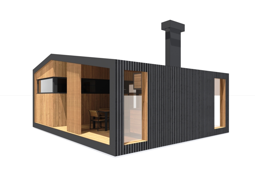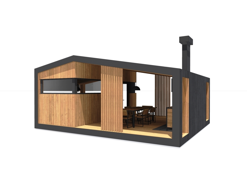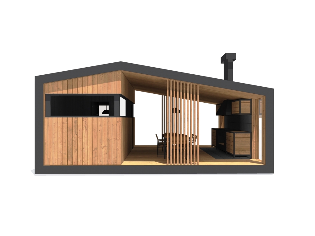 Современная модульная баня с барбекю зоной. Изготовим и установим в Московской и Тверской области.