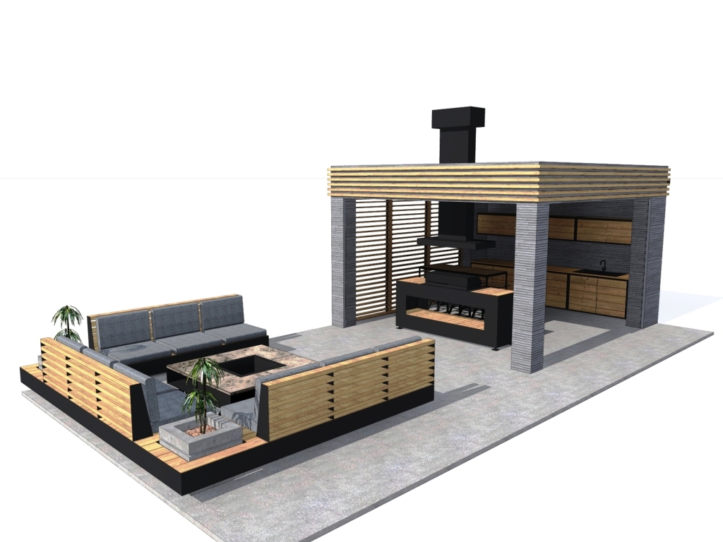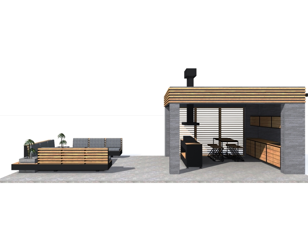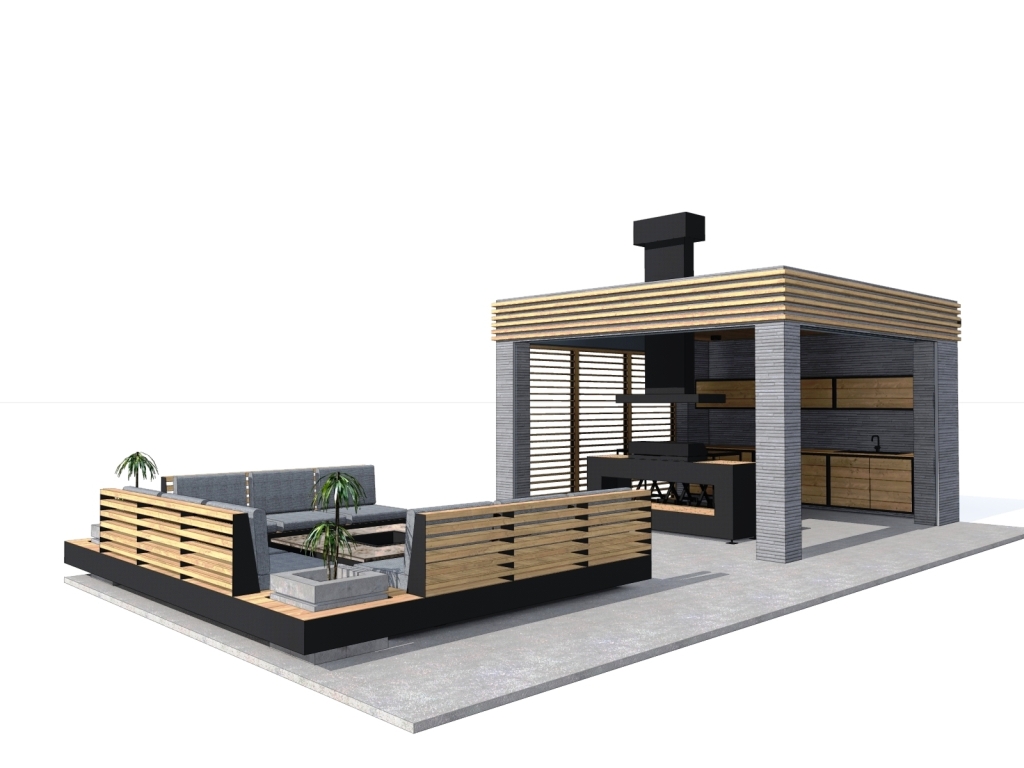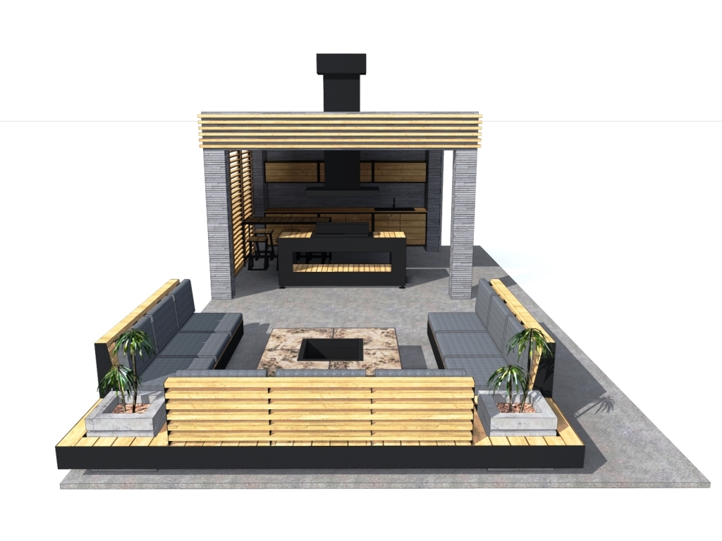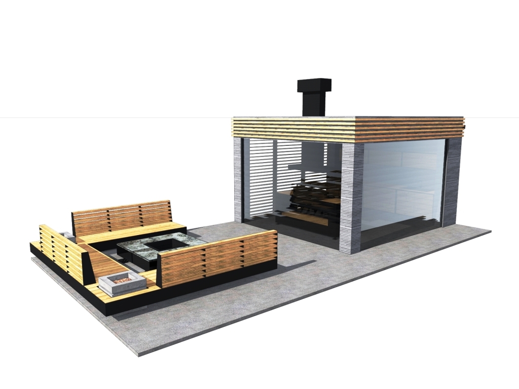 Красивая беседка с кострище в современном стиле. Габаритные размеры 4х4 метра беседка и 4х4 метра зона костра.