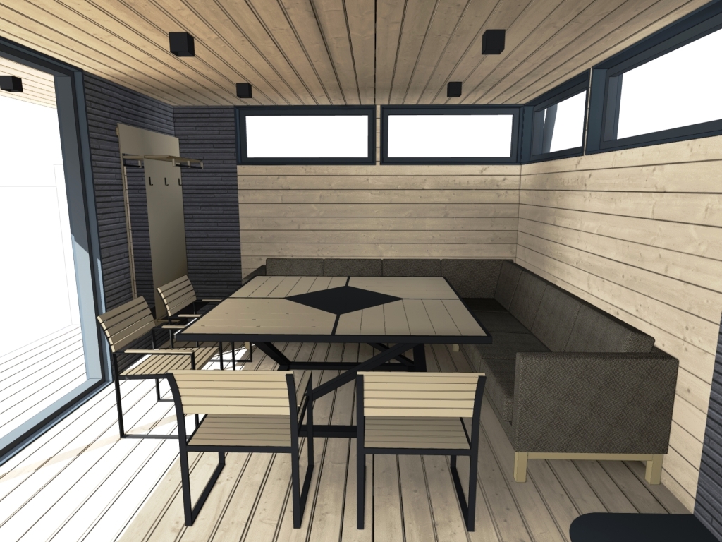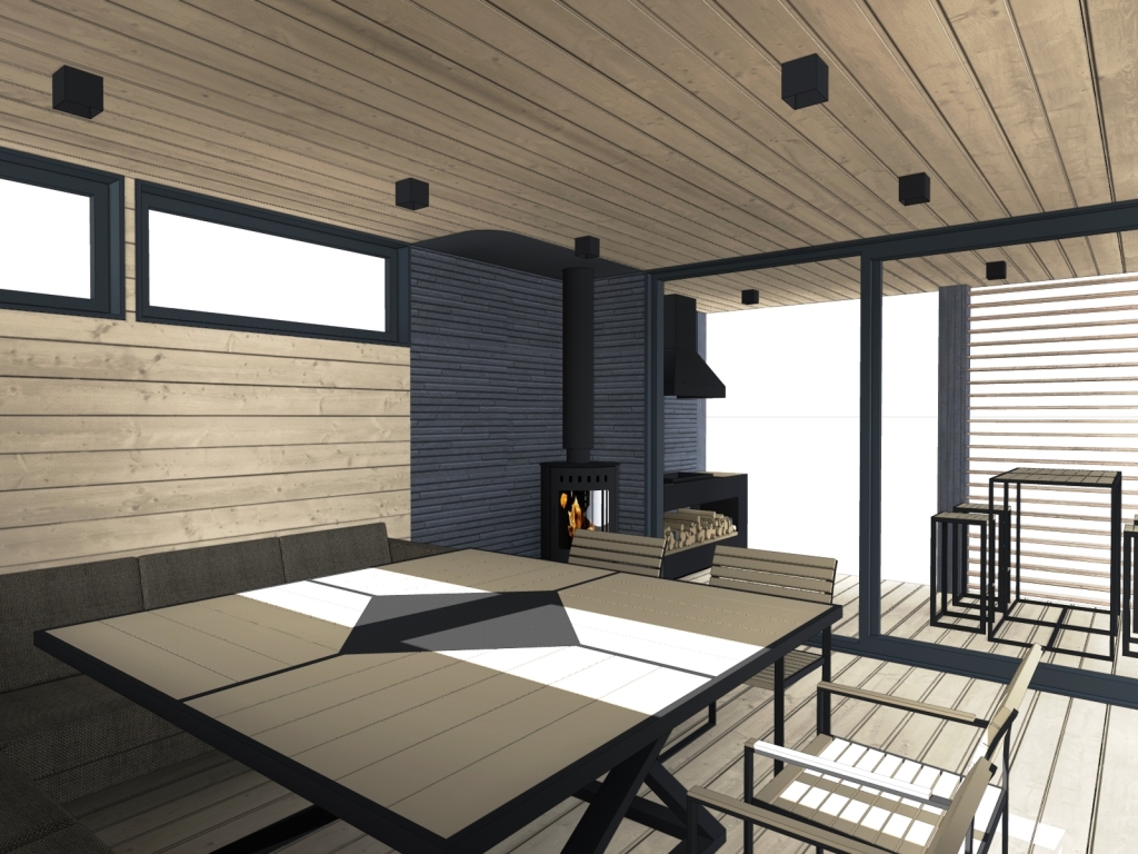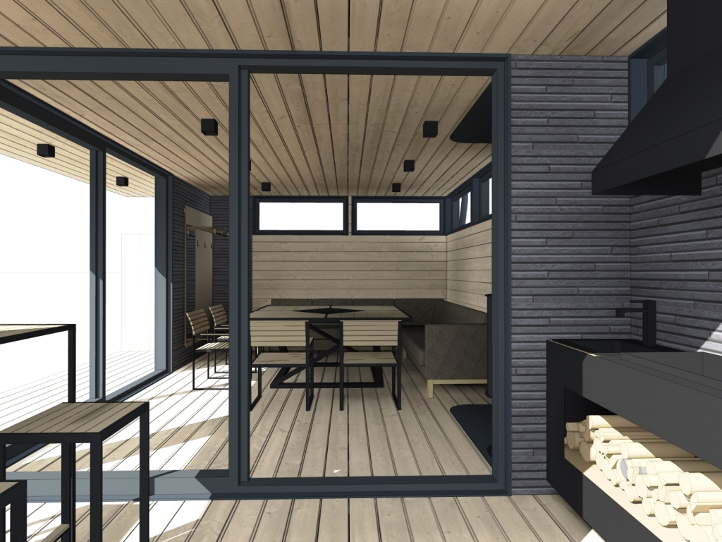 3. Отделка - доска планкен лиственница, пропитка масло для террас и фиброцементные панели.