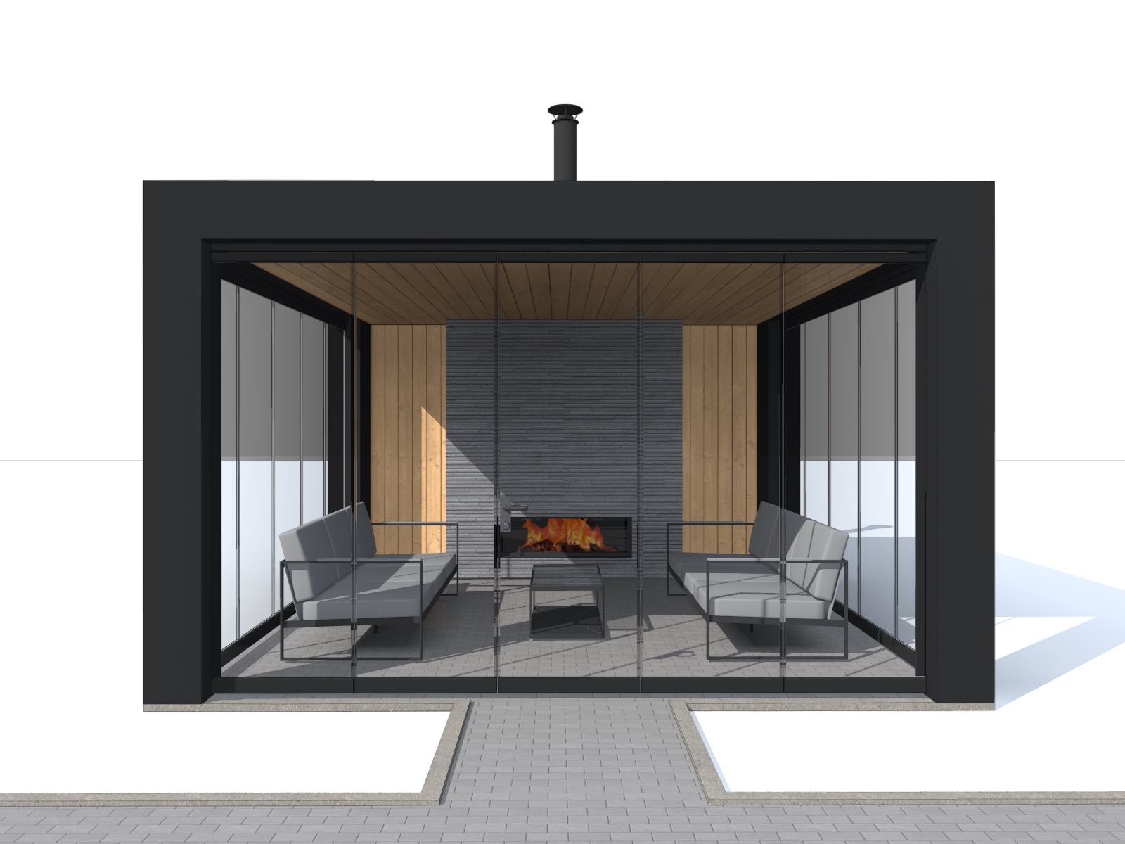Красивая беседка с камином в современном стиле. Габаритные размеры 4,4х5 метров.