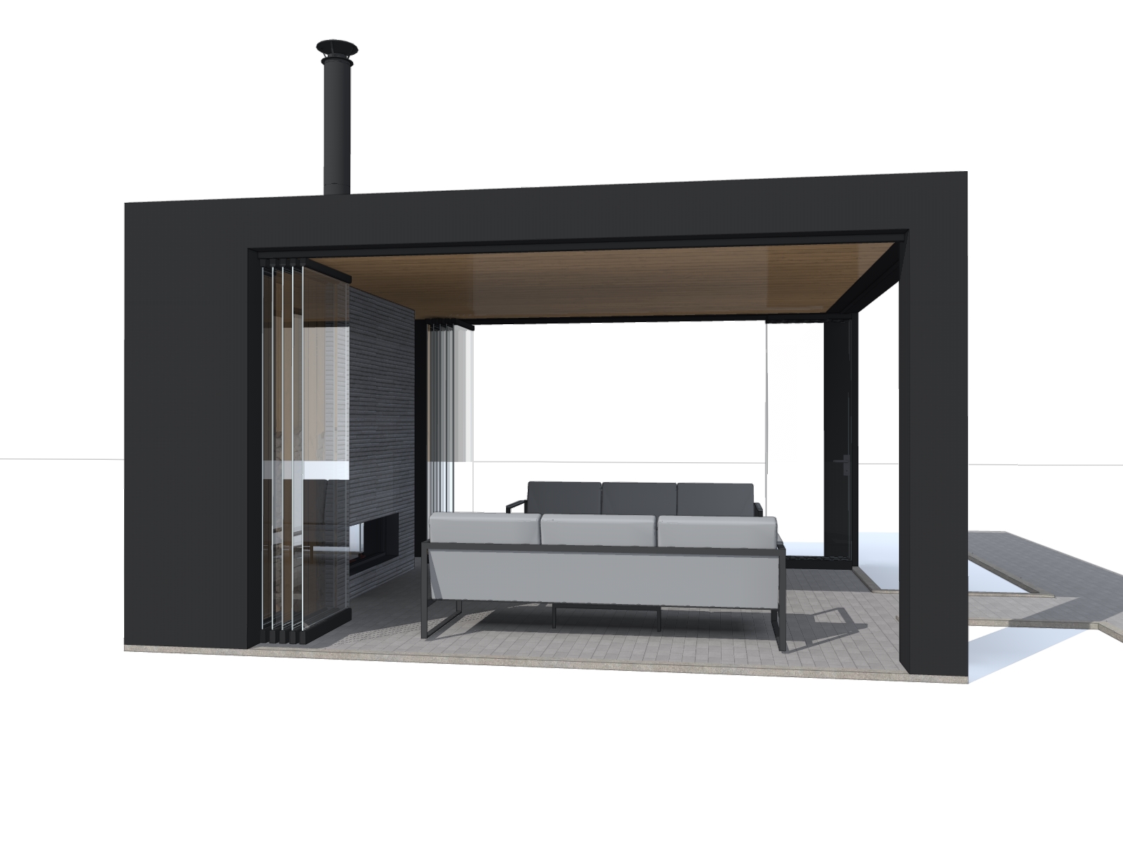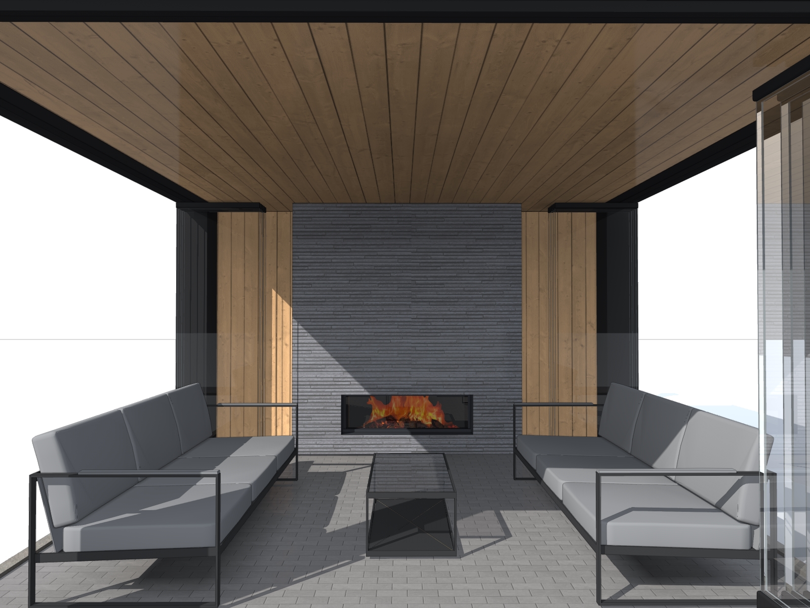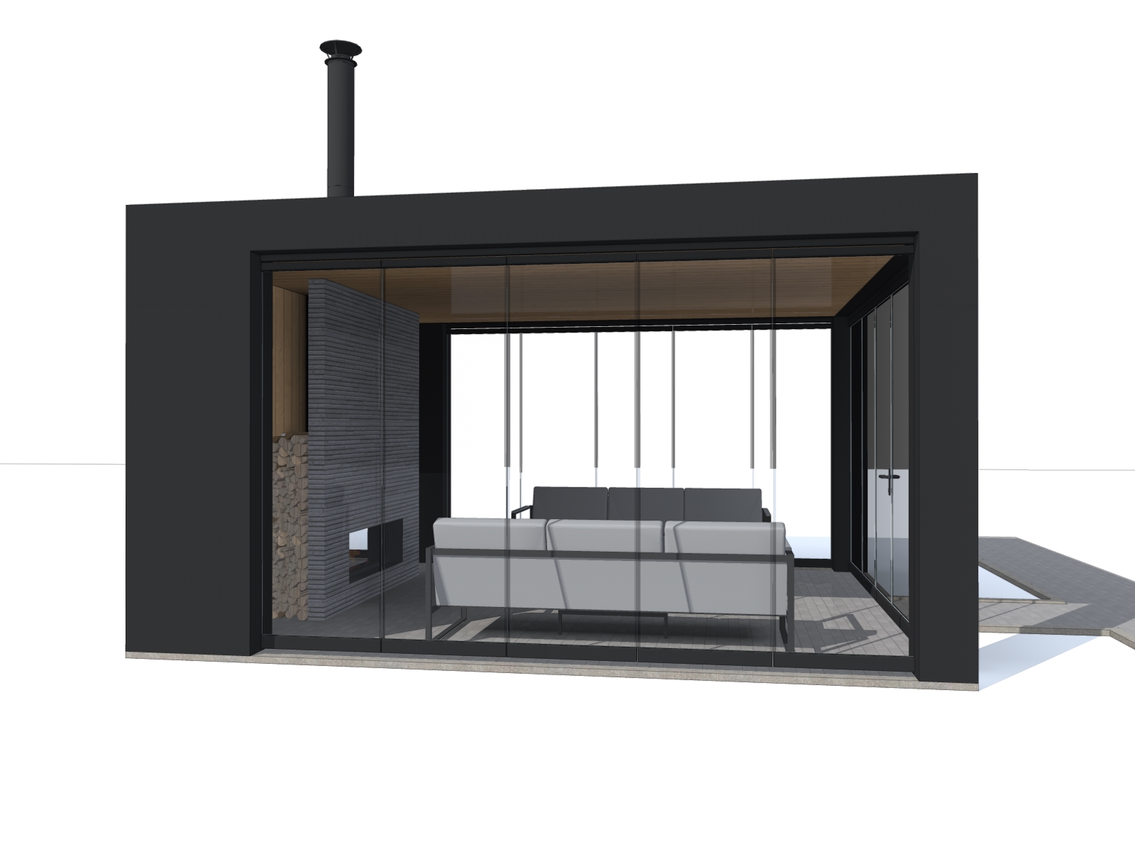 3. Отделка стен и камина - фиброцементная панель и доска лиственница, пропитка маслом для террас.
